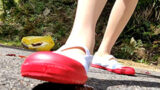 一匹一匹取り出しては、かかとや足裏全部を使って踏みにじり、またどの角度が一番潰れるか色々試しながら原型をとどめないくらい踏みにじっています。靴も可愛くてセクシー!どうぞご覧ください!!