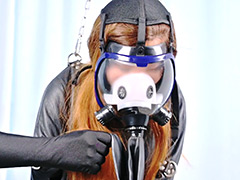 今日は新しいSMギアがたくさん届いたので、ちょうど居合わせたインテリ系女子・ヨーヨーを口説き、色々試してみることにしました。まずエナメルレオタードの上から着せるのは革製の束縛衣です。両袖が長いので、後ろ側で両手を固定できます。肩にはリングが付いているので、天井からの吊りが楽ちんです。乗馬鞭で弄んだ後は、同じく革製のベルトスカートで両足を固定します。最後は新型ガスマスクで…。